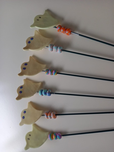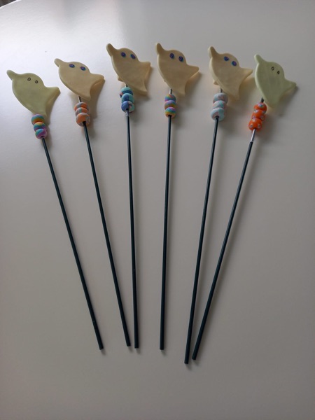 The spooky ghosts glow with a soft light which is in the clay that they are hand made from.